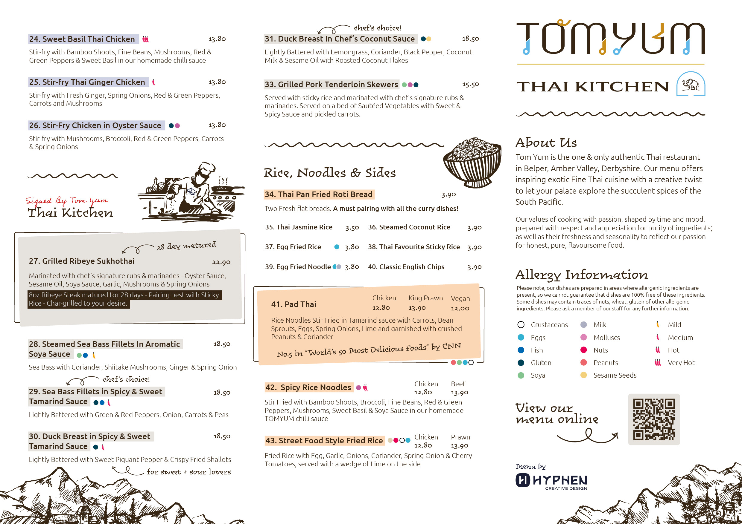 Our values of cooking with passion, shaped by time and mood, prepared with respect and appreciation for purity of ingredients; as well as their freshness and seasonality to reflect our passion for honest, pure, flavoursome food. We hope you enjoy the best of what Tom Yum has to offer. This is “Your community, Our kitchen”.